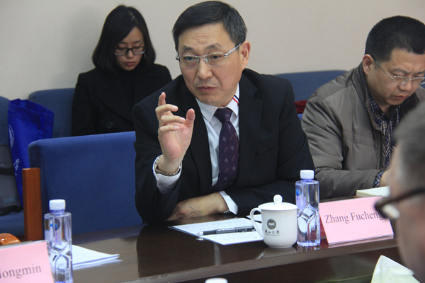 座谈会由张福成主持。会上,刘宏民代表学校对Markov校长一行的来访表示欢迎,并回顾了两校友好交往的历史和成果,向客人介绍了我校发展的现状。刘校长表示,在中俄友好的大背景下,两校开展深入合作就具有了更深刻的意义,希望两校能够在以往师生交换的基础上在科研与学科发展上开展进一步合作。