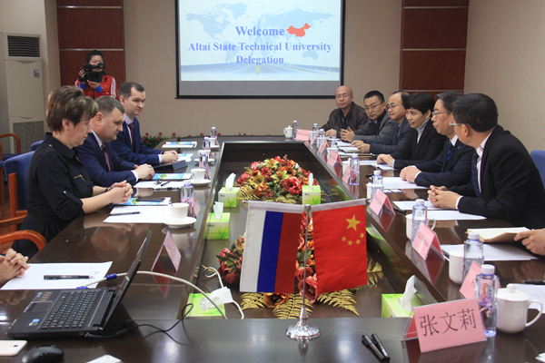 【新闻中心讯】3月23日上午,俄罗斯阿尔泰国立技术大学校长Markov Mikhailovich教授和该校主管战略发展、科学与国际事务的副校长Zrumov Aleksandrovich教授、国际合作处副处长Natalia Baryshnikova女士一行3人访问我校。我校党委书记孟卫东接见了Markov校长一行,表示会全力支持两校合作向纵深开展。校长刘宏民、副校长张福成以及国际合作处、机械工程学院、信息科学与工程学院、经济管理学院、建筑工程与力学学院、外国语学院等相关负责人与来访客人进行了工作会谈。