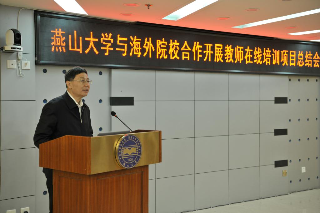 赵永生副校长向圆满完成本次培训的全体教师表示祝贺,向为本次培训提供优质课程的宾夕法尼亚大学、阿德莱德大学表示衷心的感谢。他指出,参与培训的教师们利用学期中的空余时间和寒假,克服疫情带来的不利影响,在两所大学任课教师的指导下,认真学习国际先进教育理念和教育方法,熟悉掌握学术写作和英文授课的技能,展现了燕大人奋发进取、昂扬向上的精神风貌。学校在踏上新百年第四次创业新征程之时,在争创“双一流”大学的关键时期,广大教师要时刻牢记己任,珍惜学校提供的难得机遇,胸怀走出国门的雄心壮志,拼搏进取、事争一流,希望广大教师积极参与到更多的国际交流项目中去,为我校争创“双一流”增光添彩。