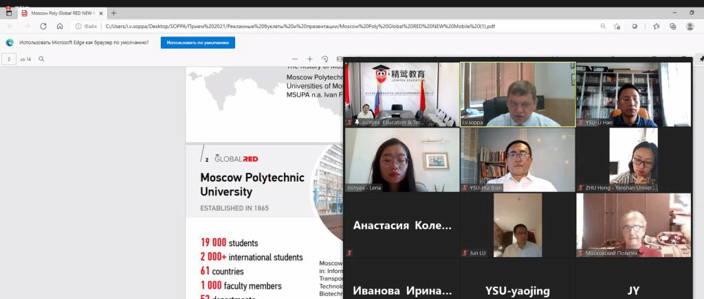 7月6日下午,我校与莫斯科理工大学(Moscow Polytechnic University)校际合作洽谈会在线上举行。莫斯科理工大学国际事务副校长弗拉基米洛维奇、国际融合和外国学生工作部主任阿列克谢耶夫娜、副主任谢尔盖耶维奇、交通学院院长伊图拉尔德、国际项目部主管亚历山德罗芙,以及我校国际合作处、机械工程学院、车辆与能源学院相关负责人和教师参加了会议。此次线上会议是两校在沟通与对接双方合作需求与专业教学培养方案后的首次会晤。