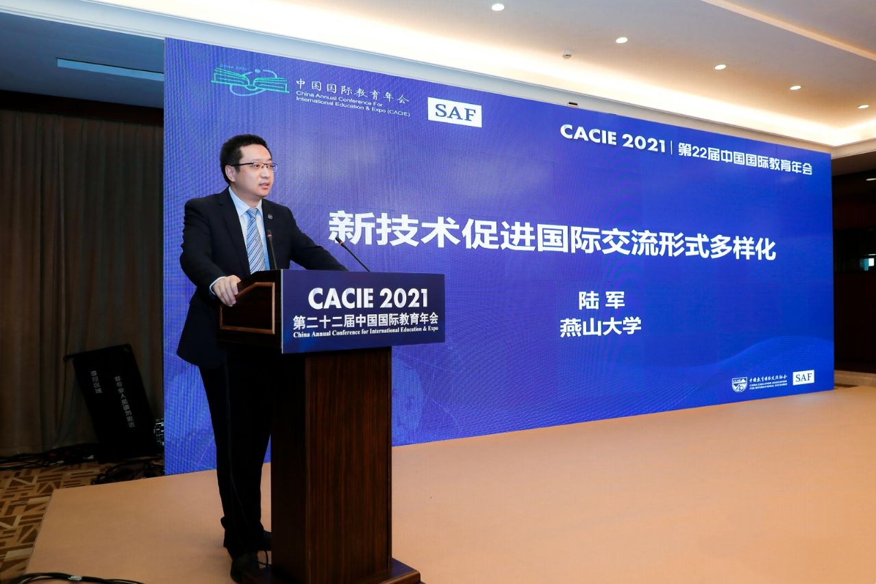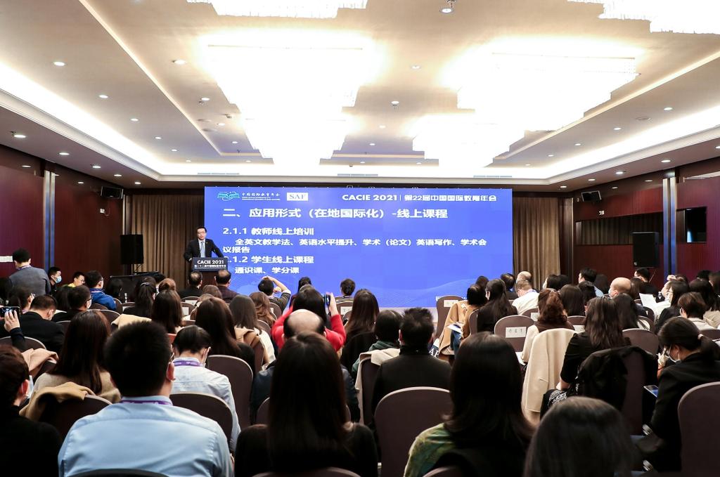 2021年10月21-23日,由中国教育国际交流协会主办的第二十二届中国国际教育年会在北京召开。21日由海外学习基金会(SAF)承办的“后疫情时代高校国际化人才培养研讨会”邀请我校国际合作处处长陆军担任研讨会的发言嘉宾,围绕研讨阶段的第二主题“如何充分利用高新技术促进国际交流形式多元化”进行分享。