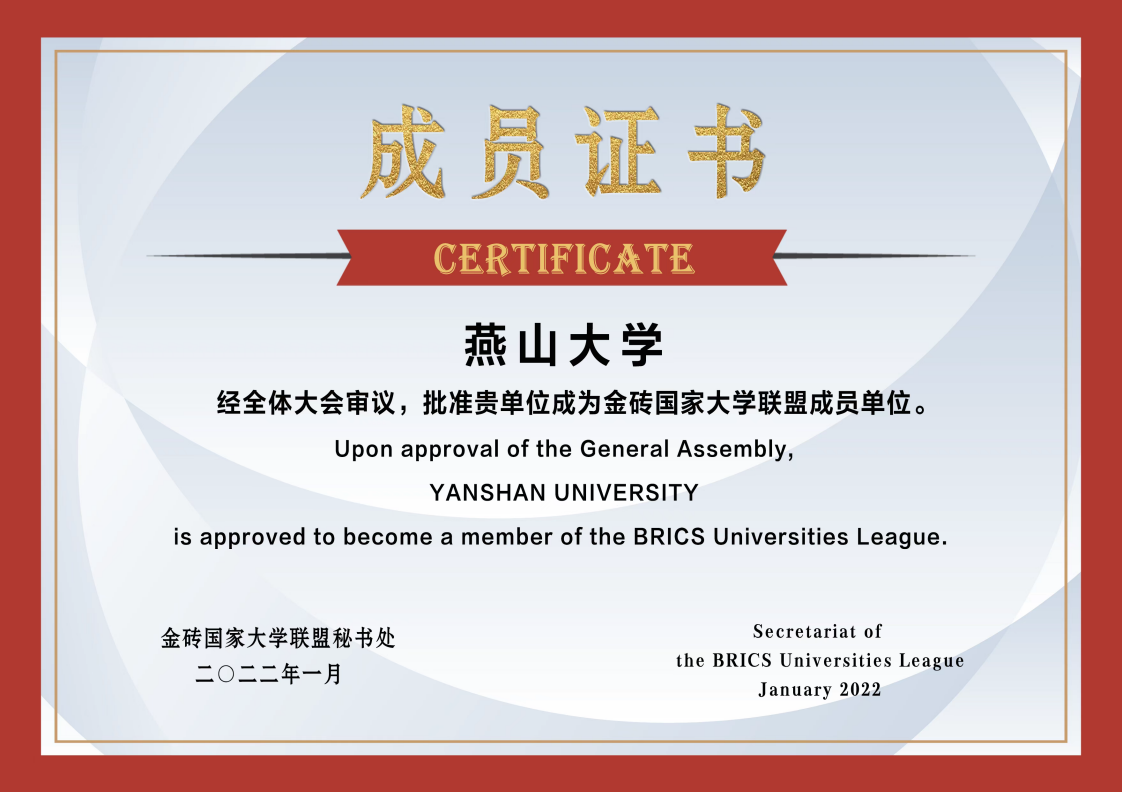 日前,我校收到金砖国家大学联盟发来的入盟证书,正式成为该联盟成员理事单位。