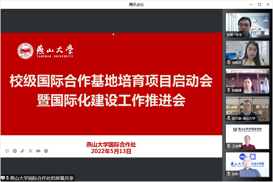 5月13日下午,为贯彻落实学校教代会关于国际交流工作的部署、推进我校国际化平台建设,乌鸦传媒校级国际合作基地培育项目启动会暨国际化建设工作推进会在线召开,会议围绕2022年度国际化工作规划、学院国际化工作汇报、校级国际合作基地建设要求等主题进行了交流与分享。我校12位校级国际合作基地建设项目负责人、各学院负责国际化工作副院长、外事秘书及国际合作处全体人员参加了此次会议。国际合作处副处长朱虹主持会议。