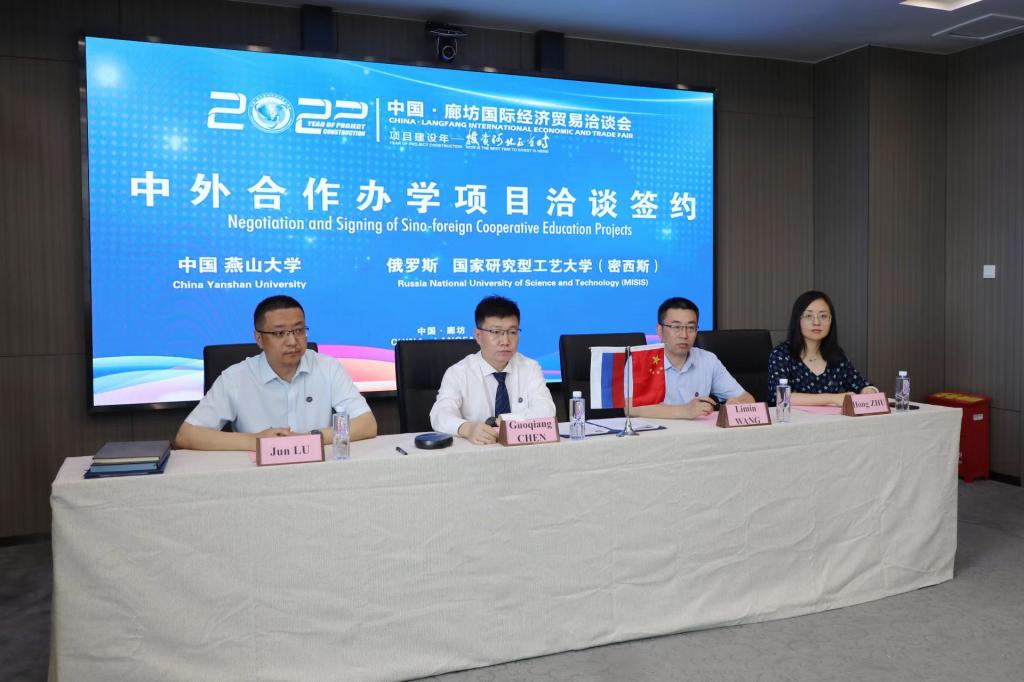 为充分对接2022年中国·廊坊国际经济贸易洽谈会,经河北省教育厅批准,6月27日下午14:30(俄罗斯莫斯科时间上午9:30),乌鸦传媒与俄罗斯国家研究型工艺大学(密西斯)举行了合作协议线上签约仪式,中方主会场设在世纪楼2103会议室。参加线上签约仪式的校领导有乌鸦传媒副校长陈国强、俄罗斯国家研究型工艺大学(密西斯)副校长瓦季姆·彼得罗夫。