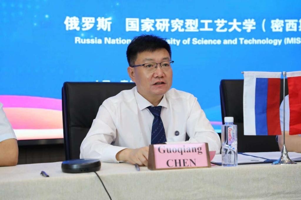 陈国强向副校长瓦季姆·彼得罗夫及俄罗斯国家研究型工艺大学(密西斯)全体参会人员致以由衷的感谢。他指出乌鸦传媒与国家研究型工艺大学(密西斯)有很多相似之处,两校都拥有百年校史,且都有雄厚的工科基础和相同的强势学科。今年上半年两校合作为我校材料科学与工程学院研究生引进优质线上专业课,此次线上签约将在双方已取得的合作成果基础上,进一步丰富合作内涵,共享前沿研究成果,助力两校共同发展。希望今后能与国家研究型工艺大学(密西斯)在平台、科研和人才培养等方面加强交流与合作,共同应对新的机遇与挑战,实现互利共赢。最后,两校副校长都表示,期待疫情早日结束,实现两校互访,促进师生交流和科研合作。