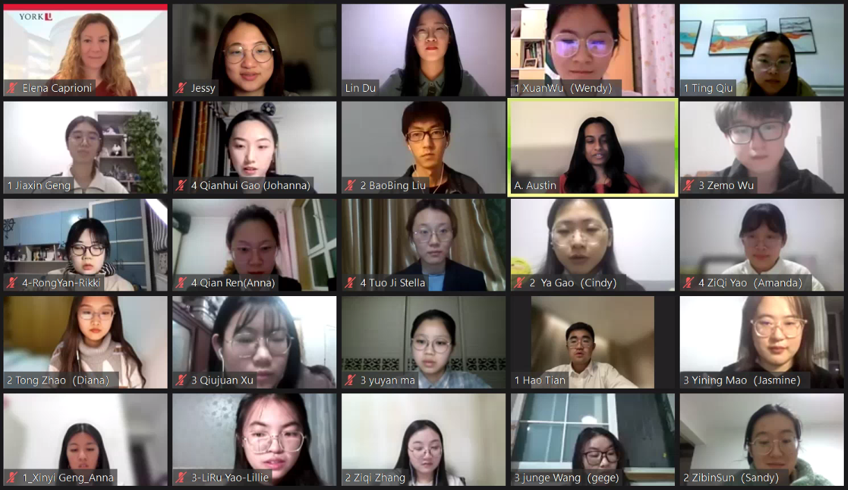 1月9日晚8点,北美世界500强企业在线实训课程举行线上开班仪式,来自加拿大约克大学的埃琳娜·卡普廖尼(Elena Caprioni)女士、毕马威公司管理咨询师A·奥斯汀(A Austin)女士和报名课程的22名同学参加了开班仪式。