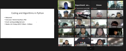 本次研究生课程共引进了由卡耐基梅隆大学、剑桥大学、哥伦比亚大学等国际著名高校教授讲授的3门课程,包括机器学习在数据科学上的实际应用、创新创业关键技能实训-让商业概念落地和Python中的编程与算法应用,采用线上直播授课模式,每门课为期8周,共16次课,32学时。