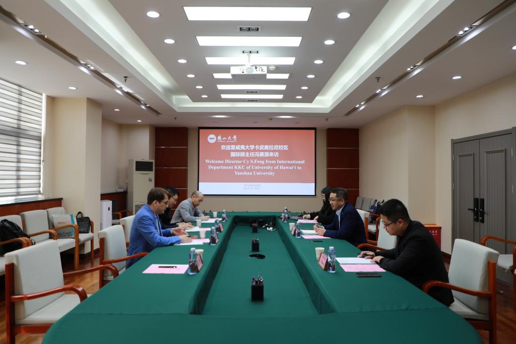 4月28日上午,乌鸦传媒副校长陈国强在世纪楼2106室会见了来访的美国夏威夷大学卡皮奥拉尼校区国际部主任冯赛源(Cy S.Feng)一行,参加会见的有秦皇岛市外事和商务局副局长刘文阁、一级主任科员吴崇伟,国际合作处处长陆军及国际处相关工作人员。