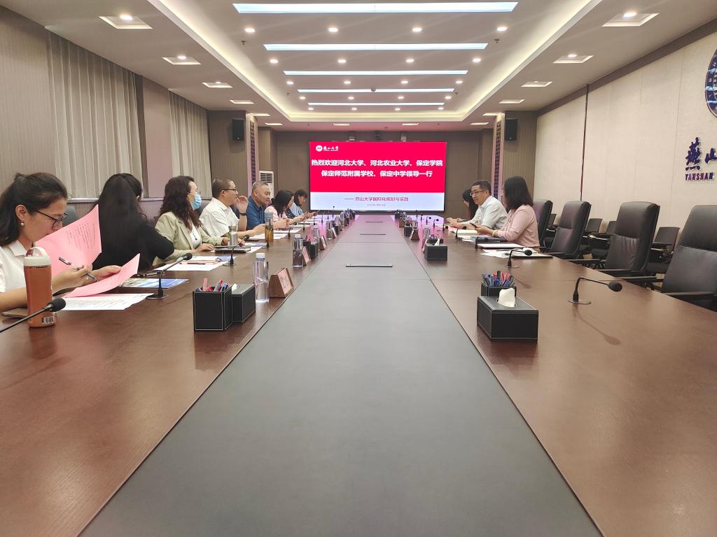 9月18日上午,河北大学国际交流与教育学院党总支书记梁卫格,河北农业大学国际合作处副处长赵绪生、国际教育交流学院副院长任晓琨,保定学院国际教育交流中心副主任王树义、汉语国际教育专业负责人张丹,河北保定师范附属学校教务处主任许海雁,保定中学教师贺林、冯亚波等一行8人来校调研交流。国际合作处处长陆军、副处长朱虹和相关负责人员参加座谈交流。座谈会由陆军主持。