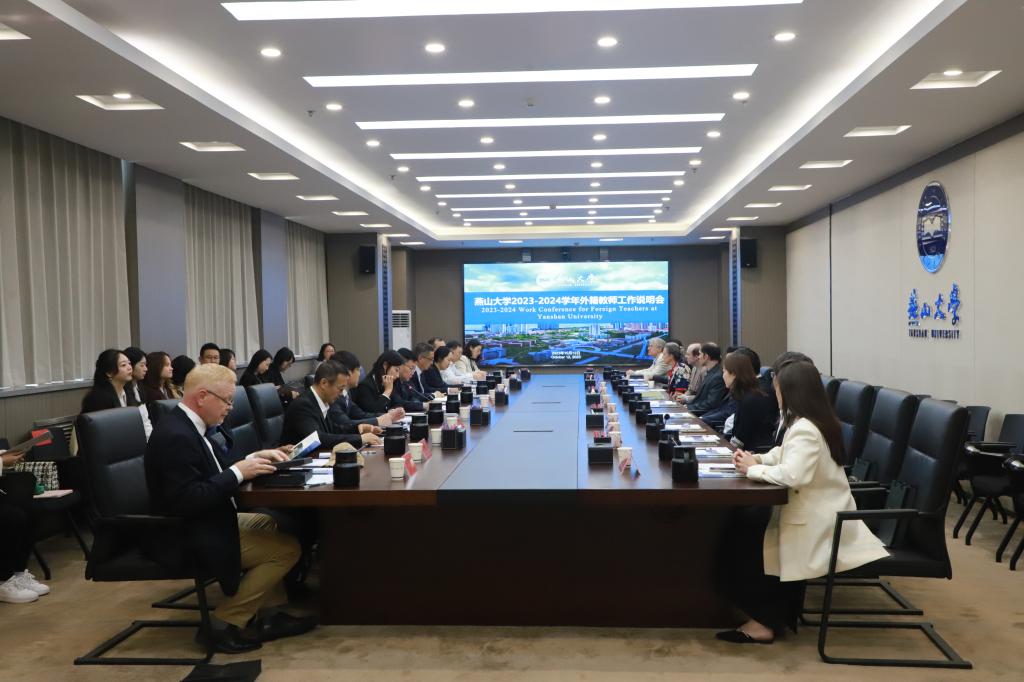 10月12日下午,我校在世纪楼2103室举办2023-2024学年外籍教师工作说明会。学校副校长陈国强、国际合作处处长陆军、教务处副处长赵春梅、人力资源处副处长刘汉峰、材料科学与工程学院副院长赵元春、外国语学院副院长付继林、艺术与设计学院副院长赵琳、在校全体外籍教师及各单位相关工作人员参加了会议。会议由国际合作处副处长朱虹主持。