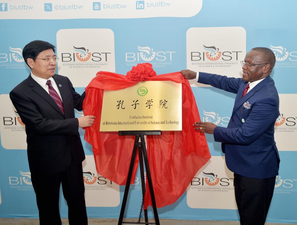 赵丁选和托托洛为博茨瓦纳国际科技大学孔子学院揭牌