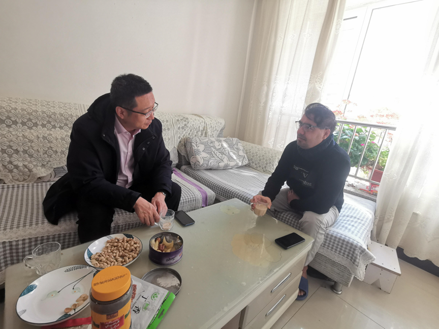 2月7日上午,在新春佳节来临之际,受学校委托,国际合作处处长陆军、副处长朱虹代表学校走访慰问在校外国专家。
