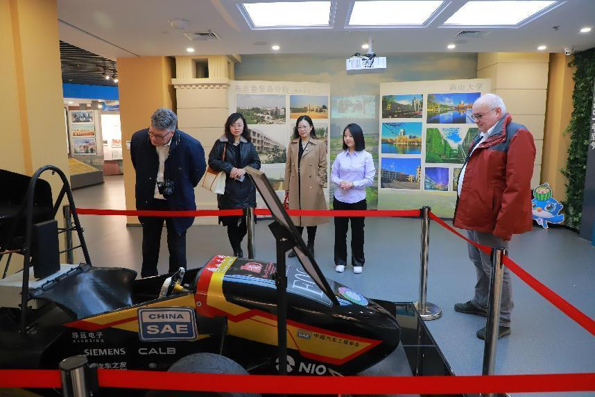 下午,车辆与能源学院相关负责人带领胡希院长一行在学院举办宣讲会,并带外宾参观了实验室。