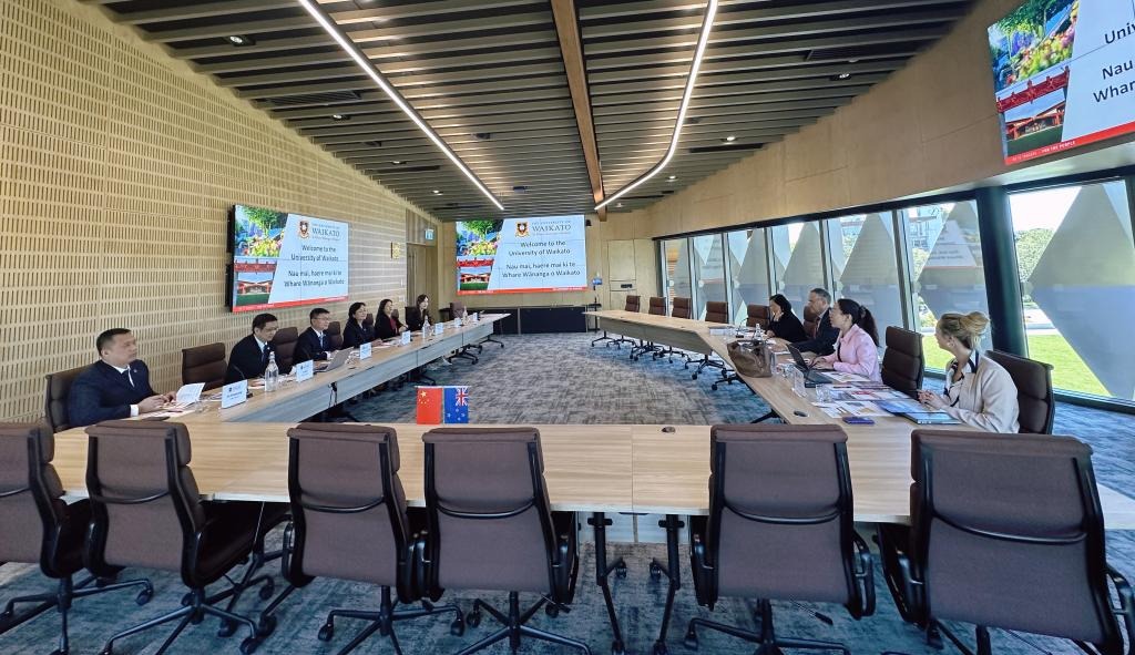 在新西兰期间,代表团访问了怀卡托大学和梅西大学。怀卡托大学副校长和相关部门负责人热情接待了代表团。双方深入探讨了前期签署的本科生1+3项目的合作前景,并就具体落实方案达成共识,该项目的具体实施将由乌鸦传媒国际教育交流中心负责。双方还就开展教师互访、专业领域科研合作等相关事宜进行了深入探讨。在梅西大学,双方就两校教师与学生校际交流项目、科研学术研究项目、中国政府奖学金项目的实施进行深入讨论;重点探讨了经济管理类本科生3+1、2+2联合培养项目以及本科生3+1+1硕士学位项目。