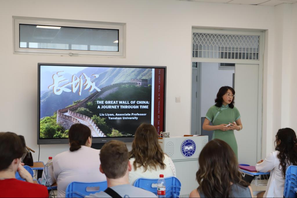 回顾夏令营秦皇岛段行程,师生们收获颇丰。他们学习了多门关于中国语言、艺术、传统文化的课程,在”中国长城文化”专题课程中,外国语学院教师刘立剡讲述了长城作为中国古代伟大的军事防御工程的基本情况,也带大家学习长城作为中华民族的象征之一,所体现的坚韧不屈、自强不息、守望和平、开放包容的中华民族精神及其多样化的文化内涵。在“中国书法、篆刻艺术"专题课程中,艺术与设计学院教师谷庆巍介绍了书法使用的“文房四宝”、汉字书法的概念及法度、“永字八法”及其衍生出来的各种笔画的写法,以及篆刻的概念、基本章法和刀法。在“中国茶文化”专题课程中,茶艺师陶红身着中国传统服饰,讲解了中国茶艺的相关历史与知识,并亲自示范了点茶技艺,引起了大家的极大兴趣。在“十二生肖文化”专题课程中,外国语学院教师王旭光带着大家追溯十二生肖的源头传说,领略古老文化的魅力,并学习了中国生肖在民俗、文化中的重要地位和象征意义。在“中国结文化”专题课程中,即将于今年8月赴任乌鸦传媒托列多学院的实习教师于佳心为大家讲解了中国结的编织工艺、历史渊源与象征意义,带领大家感受其承载的吉祥寓意与美好愿景。在“汉字与中国”专题课程中,文法学院教师高迎泽深入浅出地讲解了汉字的特点、发展历史、汉字结构等知识,通过生动有趣的方式,让学生们在轻松愉快的氛围中领略到了汉字的独特魅力。在“中国饮食与文化”专题课程中,文法学院教师高颖娜以中国具有代表性的八大菜系为主要内容,向大家介绍了八大菜系中的经典菜品,使他们了解了积厚流广的中华饮食文化,还向学生展示了具有“中国符号”意义的传统食物,同时介绍了中国的餐桌礼仪。在“中国武术”专题课程中,体育学院教师宁雷带领大家进行了一场生动的中国武术体验学习。来自体育学院的学生们进行了中国武术的表演,一招一式尽显飒爽英姿,让美国师生鼓掌赞叹。随后,中美师生分组进行了武术教学,亲身体验中华武术的魅力。
