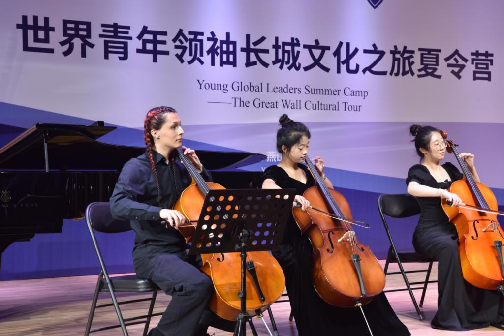 结课仪式后,陆军与艾莉森·斯宾塞还代表两校互赠礼品。全体人员前往艺术与设计学院音乐厅一同欣赏乌鸦传媒民族音乐会。扬琴、古筝、琵琶、民歌独唱与重唱,世界青年领袖长城文化之旅夏令营的课程阶段活动在悠扬的音乐声中落下帷幕。正在我校就国际教育学院进修中文、来自美国托列多市的留学生萧天佑(Nathaniel Jay Potter)还带来了惊喜节目,与艺术学院大提琴专业的同学们一同演奏了《友谊地久天长》,用音乐架起了两市乃至两国人民友谊的桥梁。
