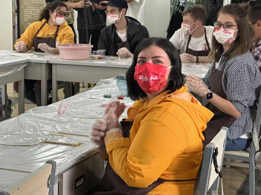 5月25日下午,托列多大学的师生来到了河北建材职业技术学院通甲字大漆艺术创新工作室,参加了“走进非遗·大漆技艺”研学活动。晕金技术的非遗传承人韩洪波老师介绍了大漆的历史,并带领大家进行了大漆作品赏析和参观。大家还在老师的带领下进行了大漆技艺体验,观看大漆技法视频,亲自动手给团扇盖上闲章,体验团扇漂漆工艺。