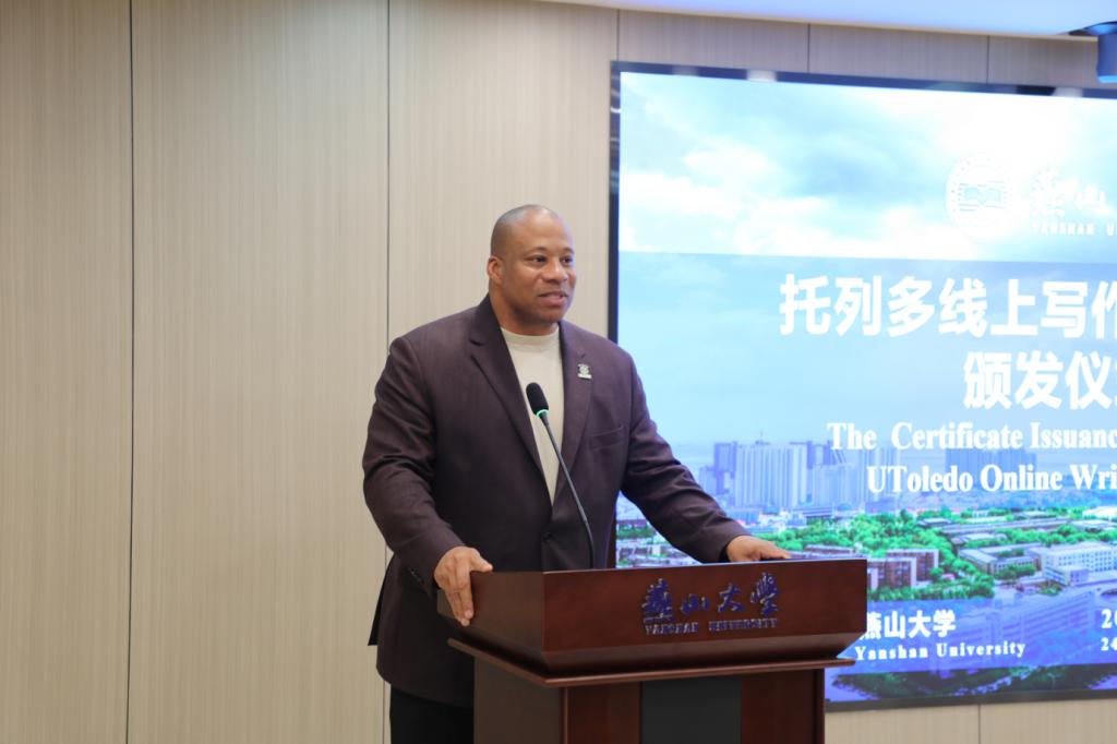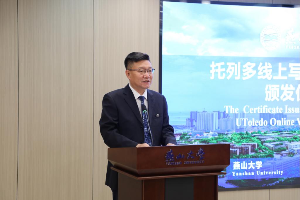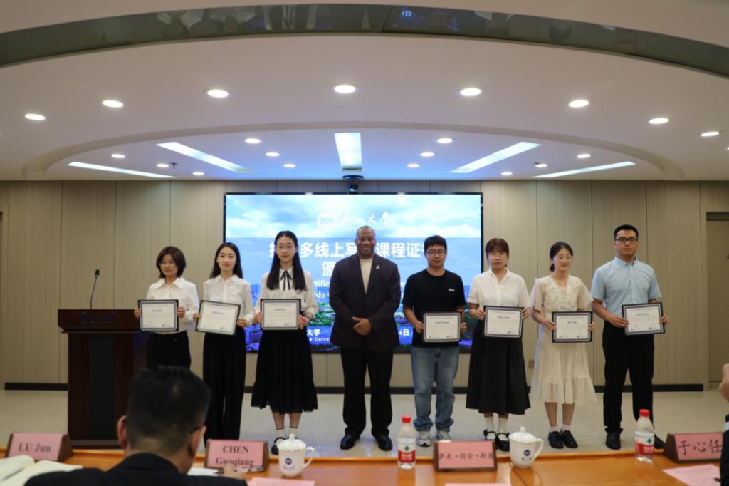 6月4日下午,托列多大学线上英文学术写作与研究课程结课暨证书颁发仪式在世纪楼1816室举行,托列多大学副校长萨米·斯潘(Sammy Spann)、托列多大学国际学生项目中心主任于心任、乌鸦传媒党委常委、副校长陈国强出席,活动由国际合作处处长陆军主持。