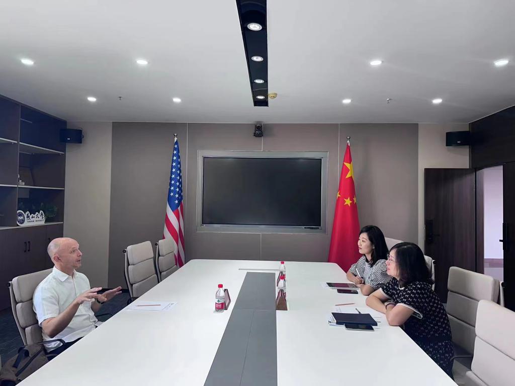 6月19日,国际合作处副处长朱虹在世纪楼1315室会见维泰克教授。朱虹向维泰克教授介绍了学校基本情况、两校合作历史及开展访问学者项目的方案,表达了对两校未来开展师资交流、学生互换项目的期待。维泰克教授也对两校未来在艺术与设计专业方面的合作前景提出了设想,双方探讨了当前中美大学生在艺术创作领域的兴趣焦点。朱虹向维泰克教授赠送了学校纪念品并合影留念。