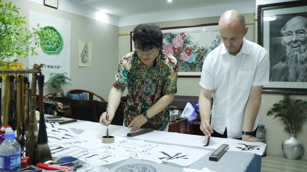 艺术与设计学院举办了“声音实验”学生工作坊,带领维泰克教授体验了中国书法艺术。体育学院赵文楠老师带领维泰克教授体验学习中国武术。维泰克教授还参观了“艺术让生活更美好”本科生毕业设计展,逐一观看了工业设计、产品设计、环境设计和视觉传达设计展区,同教师们热烈交流设计上的相关问题,对毕业生的创意作品给予了极高的评价,认为这些作品不仅展现了学生们扎实的专业基础,更体现了学生们对艺术的热爱与追求。