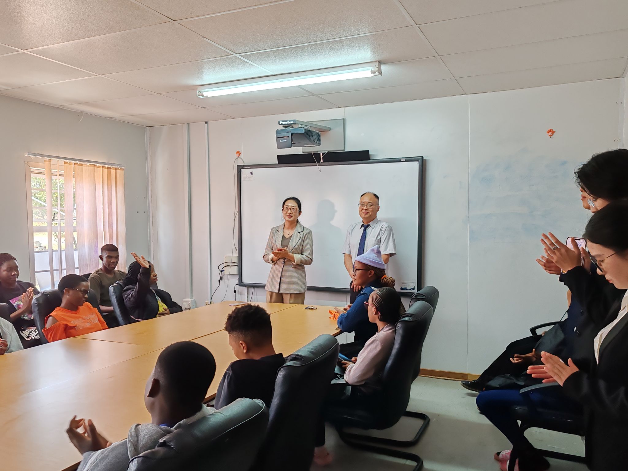 博茨瓦纳国际科技大学校长奥特洛格斯特•托托洛(Otlogetswe Totolo)教授亲切会见了乌鸦传媒赴任孔子学院工作团队。他对博茨瓦纳以及博茨瓦纳国际科技大学的发展历史进行了简要介绍,并对中国语言和文化教育事业在博茨瓦纳国际科技大学的蓬勃发展表达了殷切的期望,期待在未来的日子里,两校能够携手并进,共创辉煌,为构建人类命运共同体贡献智慧和力量。