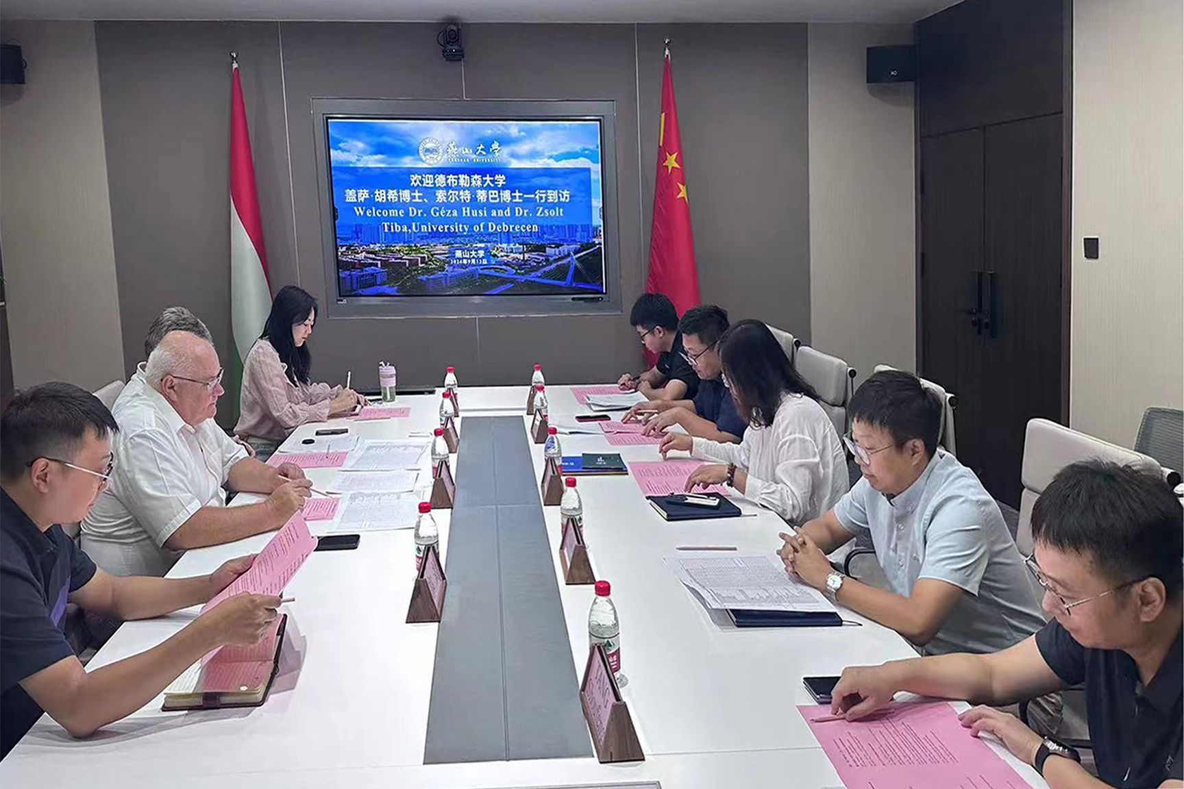 代表团由德布勒森大学工程学院院长盖萨·胡希博士(Géza Husi)和工程学院航空和道路车辆系教授索尔特·蒂巴博士(Zsolt Tiba)组成。9月13日下午,国际合作处处长陆军首先与代表团一行举行了会谈。随后,双方在世纪楼1315室举行了工作交流会,国际合作处副处长朱虹、环境与化学工程学院副院长焦体峰、车辆与能源学院副院长唐先智、环境科学与工程系主任唐首锋、副主任刘元望、车辆工程系教师郭澍及相关工作人员参加交流,朱虹主持会议。