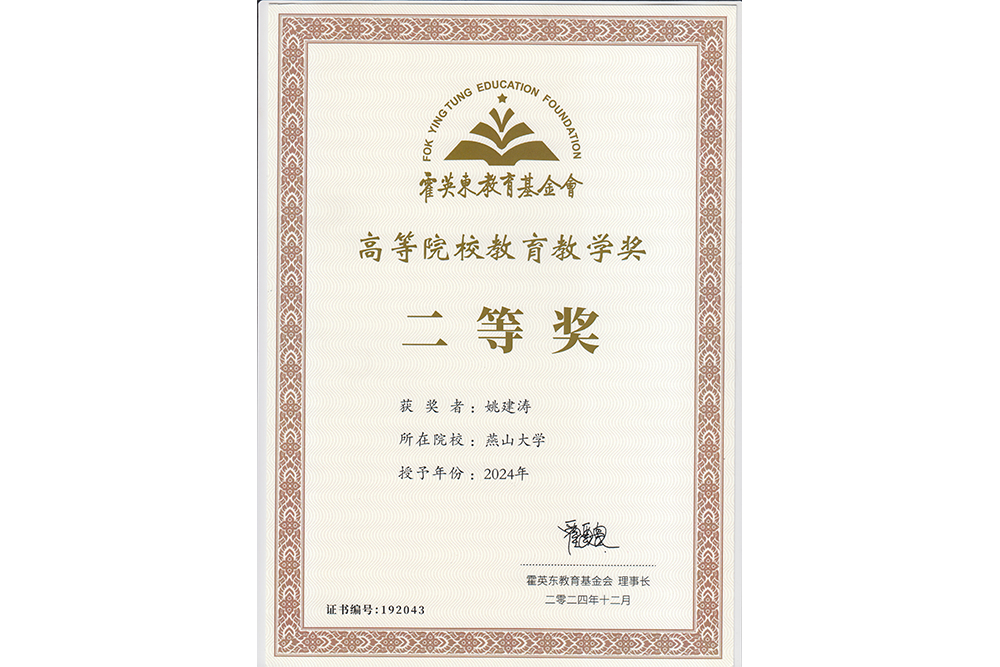 近日,“霍英东教育基金会第19届高等院校青年科学奖和教育教学奖”名单公布,我校机械工程学院姚建涛教授荣获霍英东教育基金会高等院校教育教学二等奖,这是本次河北省唯一获奖人员,实现我校在该奖项评选中的又一重要突破。