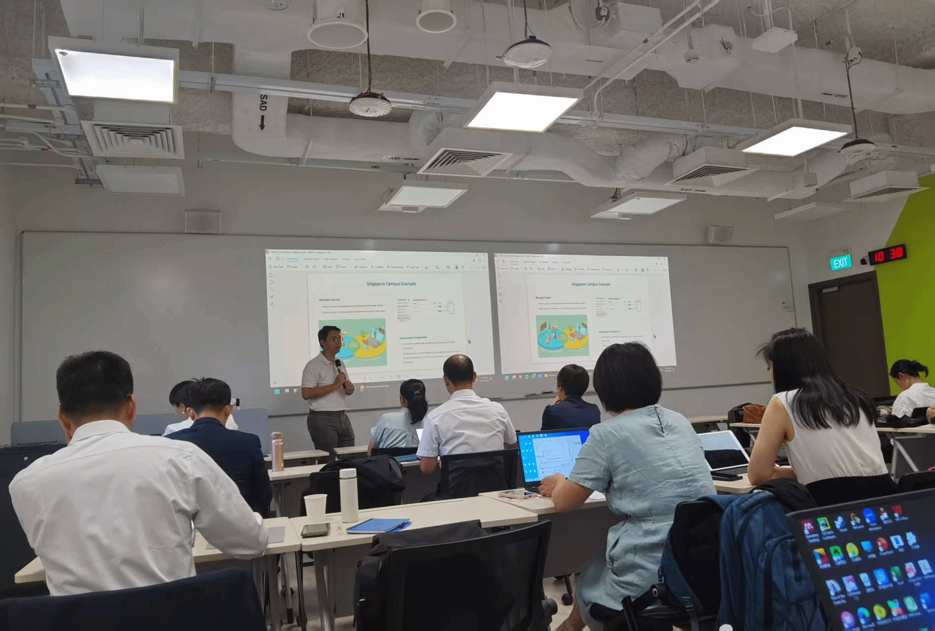 在10天的研修学习中,学员们围绕数字化技术在教育教学中的应用、教育信息化平台的搭建与运营、信息化师资队伍的培养机制等核心内容,通过专题讲座、案例分析、实操演练、小组研讨等多种形式,深入学习了相关领域的前沿成果和成功经验,并与高等教育机构的教职员工进行了深入的交流,充分了解了新加坡高校教育信息化氛围和管理运营模式,提升了教育信息化能力,拓宽了国际视野。
